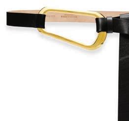 Stripe shirt ($598), English mohair skirt ($1,198), leather T logo belt ($228), Tory Burch, Worth Avenue, Palm Beach, The Gardens Mall, Palm Beach Gardens, Town Center at Boca Raton, toryburch.com; Viv’ Go-Thick metal buckle stretch cuissard boots in soft leather ($2,695), Roger Vivier, rogervivier.com