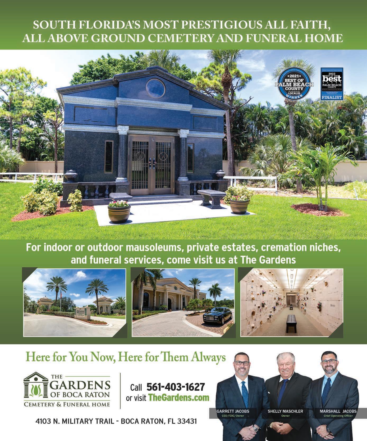 ©2023 Palm Beach Media Group North LLC. All rights reserved. Palm Beach Illustrated [ISSN 1047-5575] [USPS #2489] is published monthly by Palm Beach Media Group North LLC, P.O. Box 3344, Palm Beach, FL 33480. Known office of the publication 1000 N. Dixie Hwy., Suite C, West Palm Beach, FL 33401. Periodical postage paid at West Palm Beach, FL, and at additional mailing offices. POSTMASTER: Send address changes to: Palm Beach Illustrated c/o Palm Beach Media Group North LLC, P.O. Box 3344, Palm Beach, FL 33480. Subscription price: $42 per year. Outside U.S. add $40 per year for postage and handling. Send subscription orders to: Subscription Department, Palm Beach Illustrated P.O. Box 3344, Palm Beach, FL, 33480, or email circulation@palm beachmedia.com, or fax (561) 659-1736. Vol. 71, No. 1, January 2023.