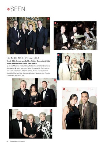 PALM BEACH OPERA GALA Event: 50th Anniversary Golden Jubilee Concert and Gala Venue: Kravis Center, West Palm Beach 1. Alvaro Martinez-Fonts, Hillary Matchett, Jonathan Diamond, Brad Deflin 2. John, Mac and Zelda Schwebel 3. Zach, Cathy and Marc Solomon 4. Sherrill Milnes, Maria Zouves, Daniel Biaggi 5. Mari and Jon Secada 6. Robert Nederlander, Frayda Lindemann, Patricia Cook 4