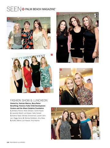 Hosted by: Neiman Marcus, Boca Raton Benefiting: Florence Fuller Child Development Centers and the Miami Dolphins Foundation 1. Brittany Henne, Heidi Johnson, Carrie Hayes 2. Jeanette Woolf, Lori Keezer, Sally Canold 3. Katina Taylor, Denise Zimmerman, Lauren Johnson, Peggy Henry 4. Monica Goldstein, Amy Ross 5. Kathy Adkins, Lori Keezer, Amy Kazma