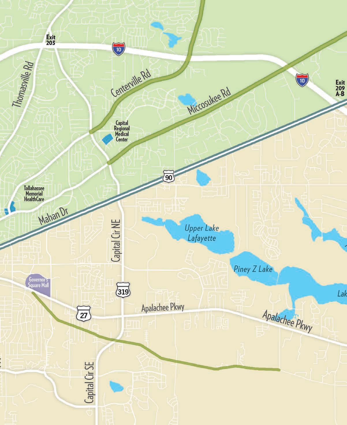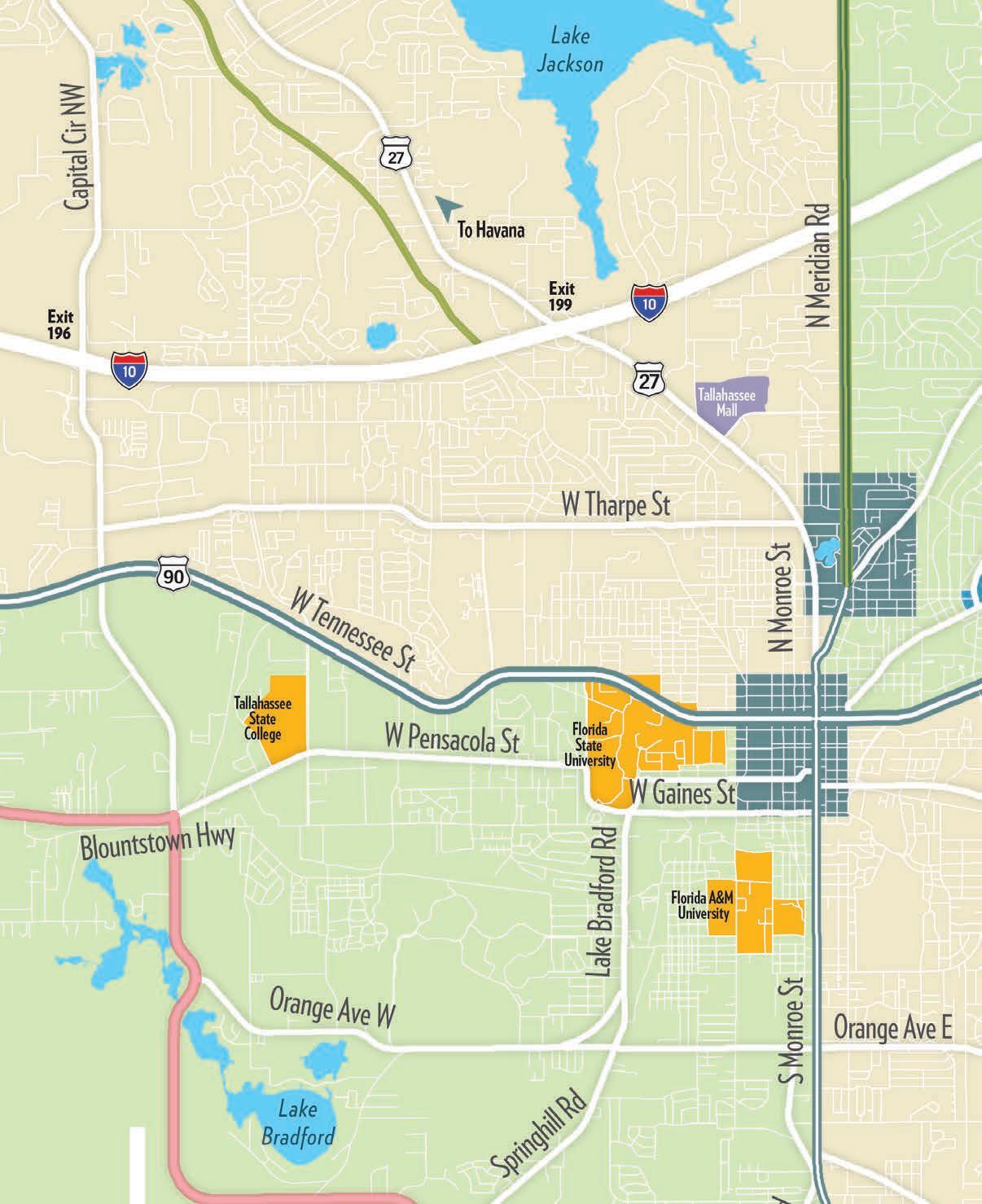 Located just 25 miles north of the Gulf of Mexico and 14 miles south of Georgia, Tallahassee is situated in the Florida Panhandle with convenient access provided by four major highways: I-10, U.S. 27, U.S. 319, and U.S. 90.