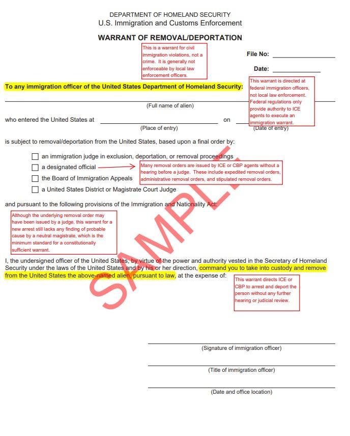 An ICE Administrative Warrant is signed by an immigration officer, not a judicial officer (judge or magistrate). ICE administrative warrants are far more limited than judicial warrants.
