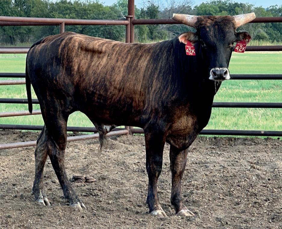 42K is sired by Frequent Flyer out of a No Regrets. This bull really bucks and has a lot of intensity.