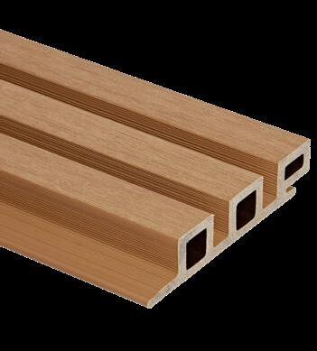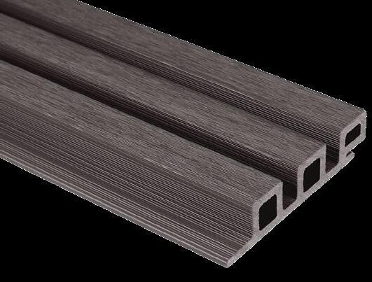 Forma decking is co-extruded, with a thick 1mm capping of durable HDPE wrapped all around the wood plastic composite core of the decking board.