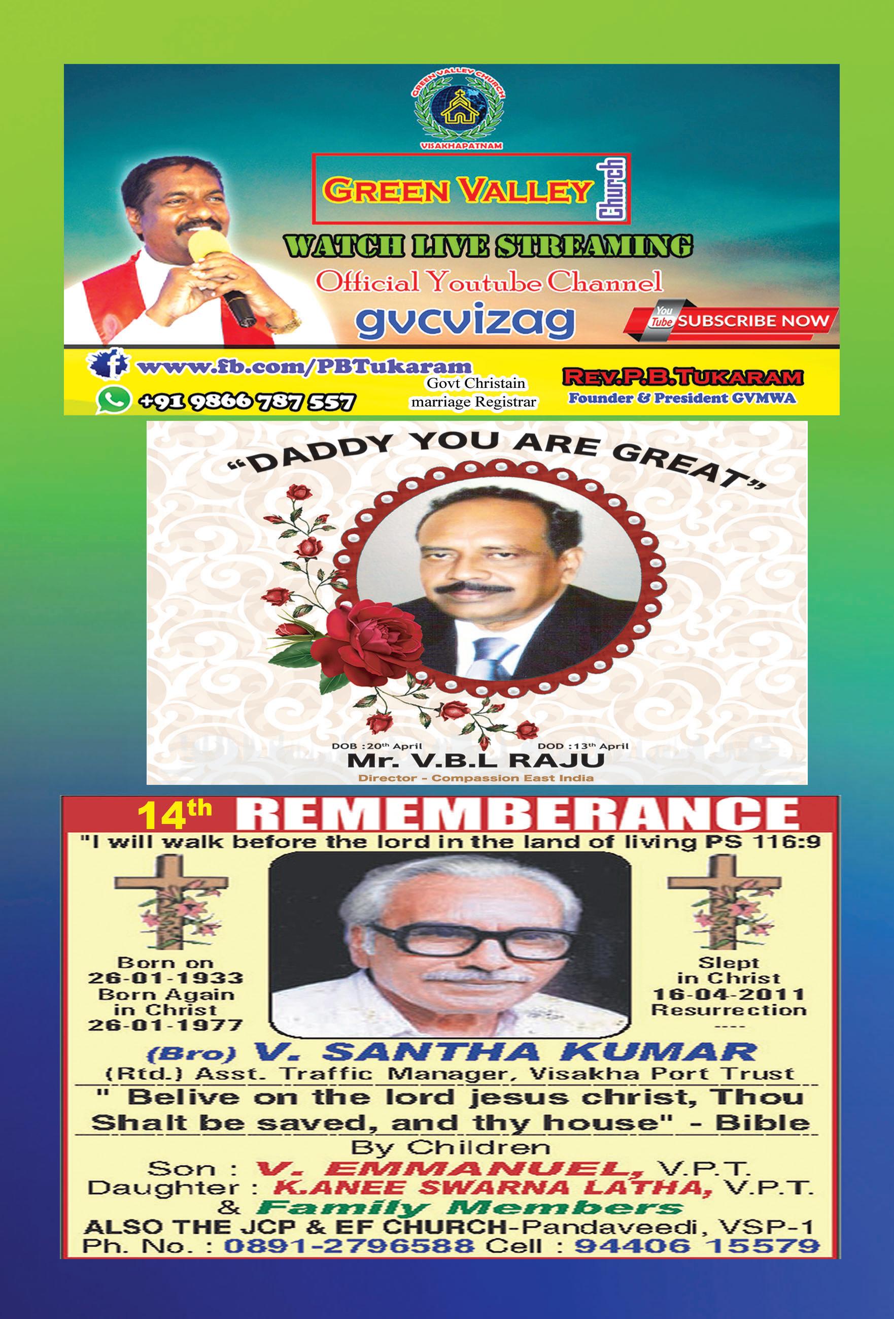 Sub-Editor : Rev.B.Joseph Ravindra. &ç.{Ï.|æ.: Áã<äsY |æ.n_Ûùwø˘