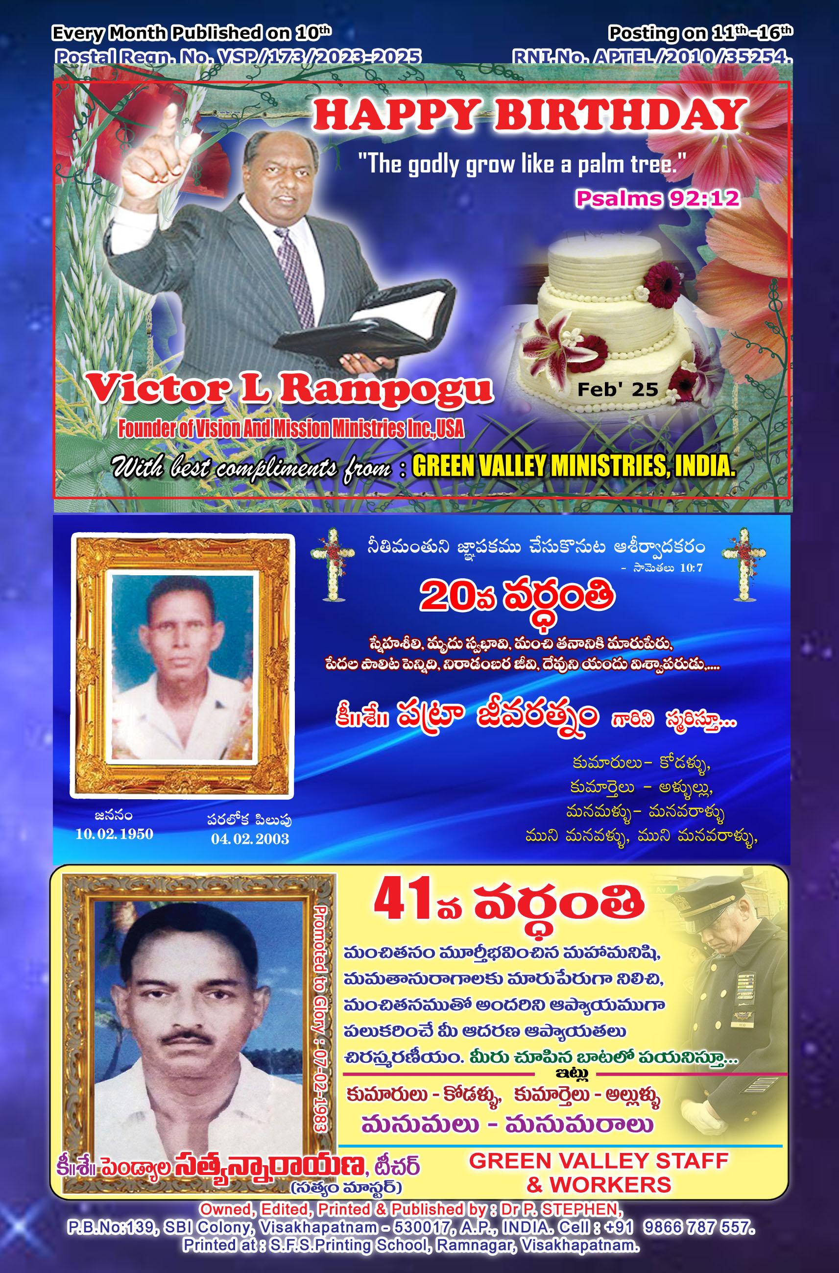 Sub-Editor : Rev.B.Joseph Ravindra. &ç.{Ï.|æ.: Áã<äsY |æ.n_Ûùwø˘
