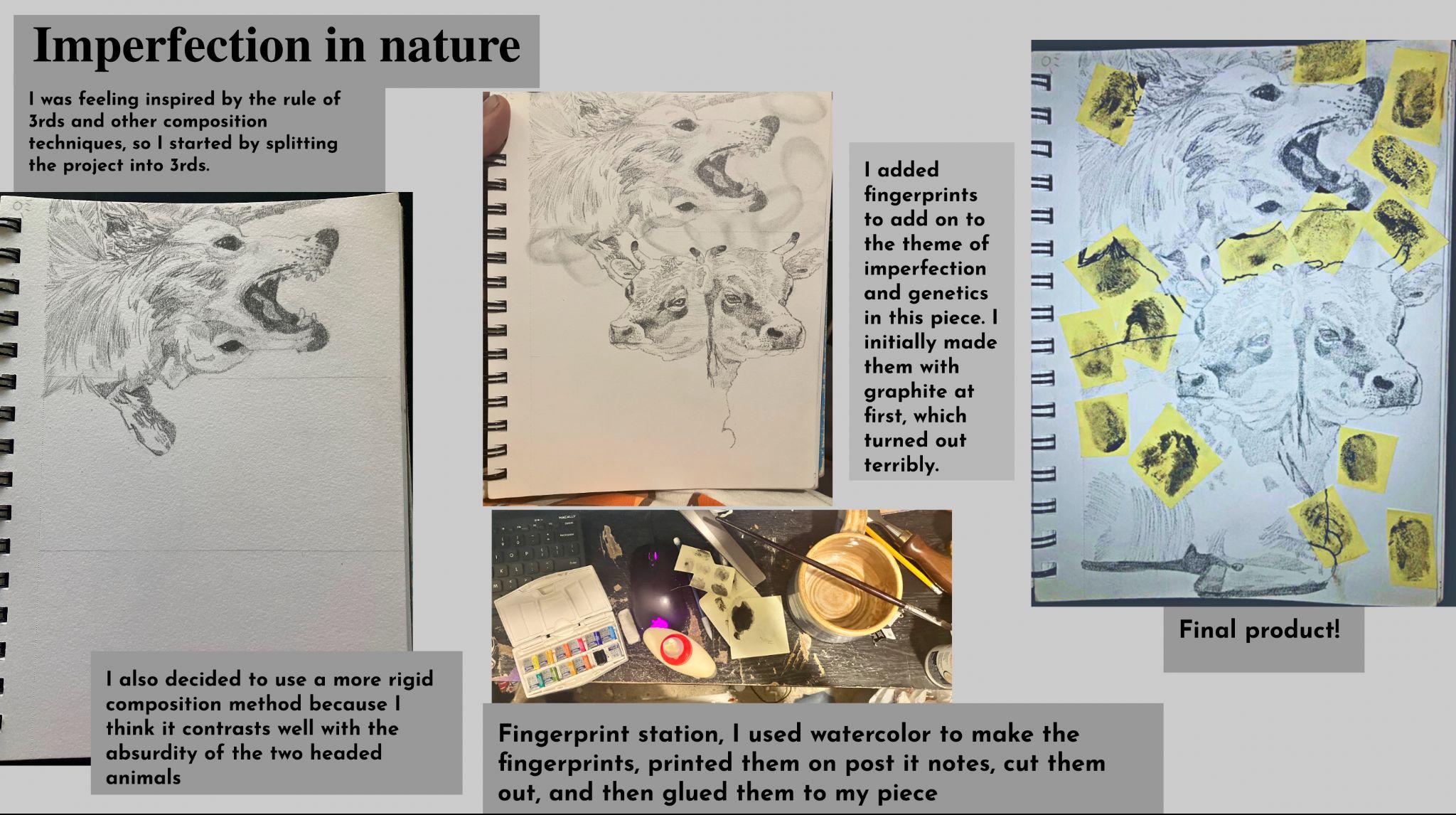 ● One Concept Exploration / Media study of a medium you have never used or a comfortable media that you challenged the normal way it is used (Brain Breaks can be used as a starting point but further exploration must take place to count for Media Study portion of the Visual Journal assignment.)