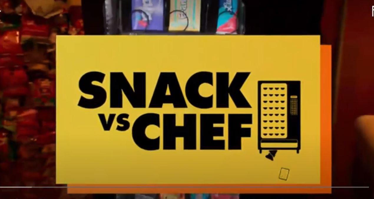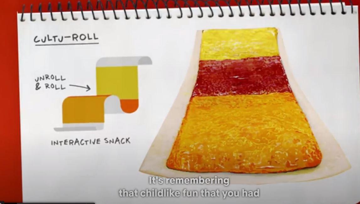Snack vs Chef:TV show where chefs are challenged to develop new snacks.This contestant creates a sticky snack inspired by Cheetos residue and childhood memories.