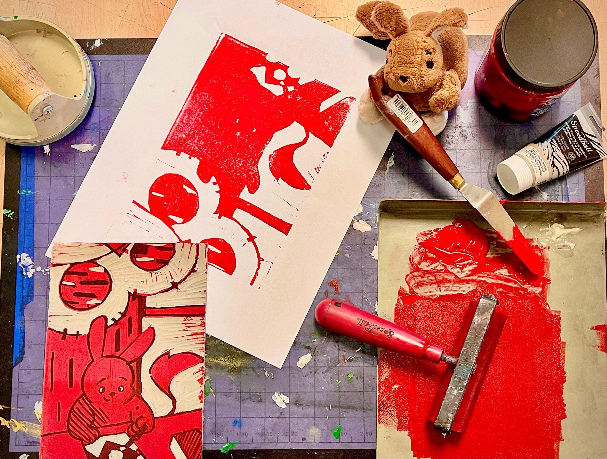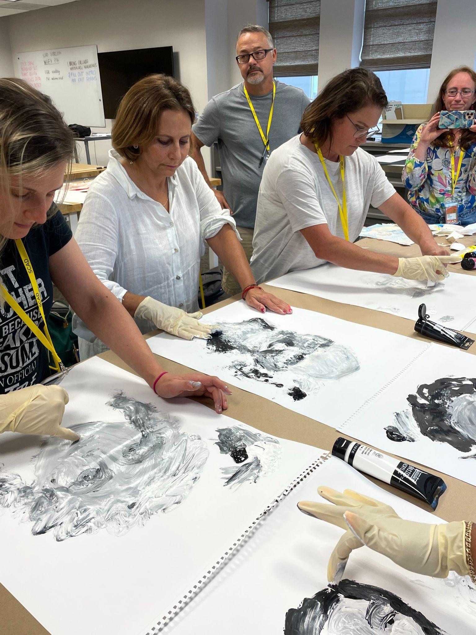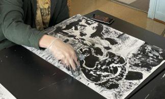 2. White/black paint, gloves, paper Make finger painting inspired by word.