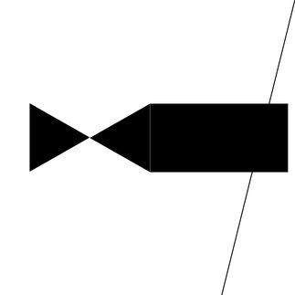 2. An equilateral triangle is centred on the middle of the line with sides measuring half the length of the line pointing downwards.