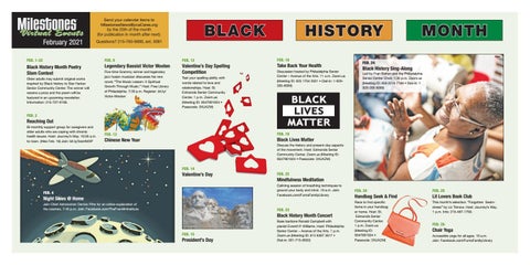 Celebrate Black History Month with readings of works by Black poets. Host: FEB. 4 St. Edmonds Senior Community Center. @ Home 11:30 a.m. Night Zoom.usSkies (Meeting ID: Join Chief Astronomer Derrick Pitts for an online exploration of 9547901024 • Passcode: 3XUAZM) the cosmos. 7:45 p.m. Join: Facebook.com/TheFranklinInstitute