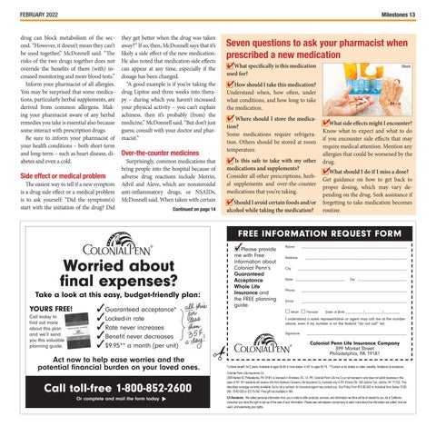 drug can block metabolism of the second. “However, it doesn’t mean they can’t be used together,” McDonnell said. “The risks of the two drugs together does not override the benefits of them (with) increased monitoring and more blood tests.” Inform your pharmacist of all allergies. You may be surprised that some medications, particularly herbal supplements, are derived from common allergens. Making your pharmacist aware of any herbal remedies you take is essential also because some interact with prescription drugs. Be sure to inform your pharmacist of your health conditions – both short-term and long-term – such as heart disease, diabetes and even a cold.