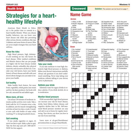 Name Game Across 1 Hillary, to Bill 5 Muslim religious leader 9 Orate 14 Jewish month 15 Cleopatra’s river 16 Cite 17 Weavers 20 Fleming or Hunter 21 Women’s suffrage leader