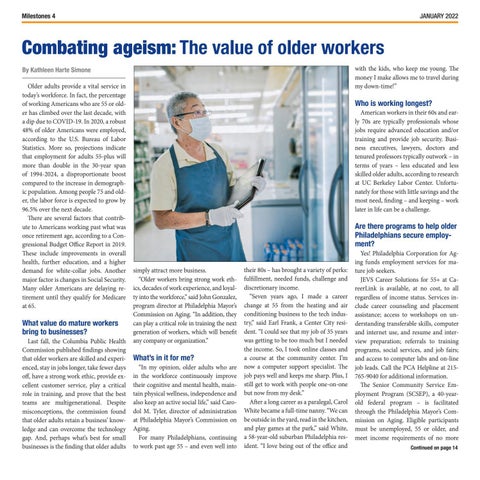 “In my opinion, older adults who are in the workforce continuously improve their cognitive and mental health, maintain physical wellness, independence and also keep an active social life,” said Carodol M. Tyler, director of administration at Philadelphia Mayor’s Commission on Aging. For many Philadelphians, continuing to work past age 55 – and even well into