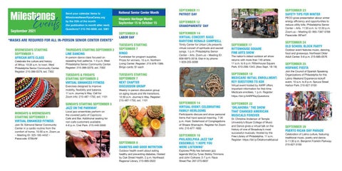 National Senior Center Month Hispanic Heritage Month September 15 to October 15 SEPTEMBER 6 LABOR DAY TUESDAYS STARTING SEPTEMBER 7 BINGO