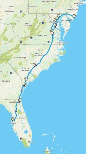 We planned the first leg to go from our hometown in Odessa, FL to somewhere in Georgia. On our way we had a leisurely detour through beautiful Savannah, GA and then continued to our first overnight rest, which ended up being in Yemassee, SC.