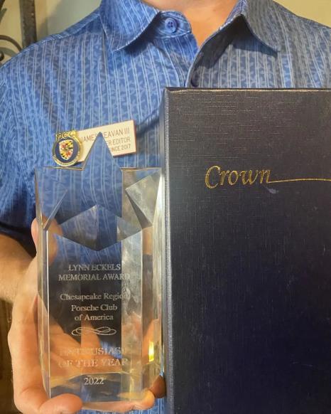Drum roll please 2022’s Chesapeake Enthusiast of the Year award went to my good buddy James Beavan III. James is not only the Patter editor but he is our Facebook and Instagram presence. He is always posting photos on these sites along with timely content. The Patter continues to grow under his editorial leadership and he really kept it alive during the covid months with the Member Profiles that he started. Plus we all see James at many of our events including tours, autocross, tech sessions, social, board meetings etc. James truly is a Chesapeake enthusiast and so we should all congratulate and thank him!