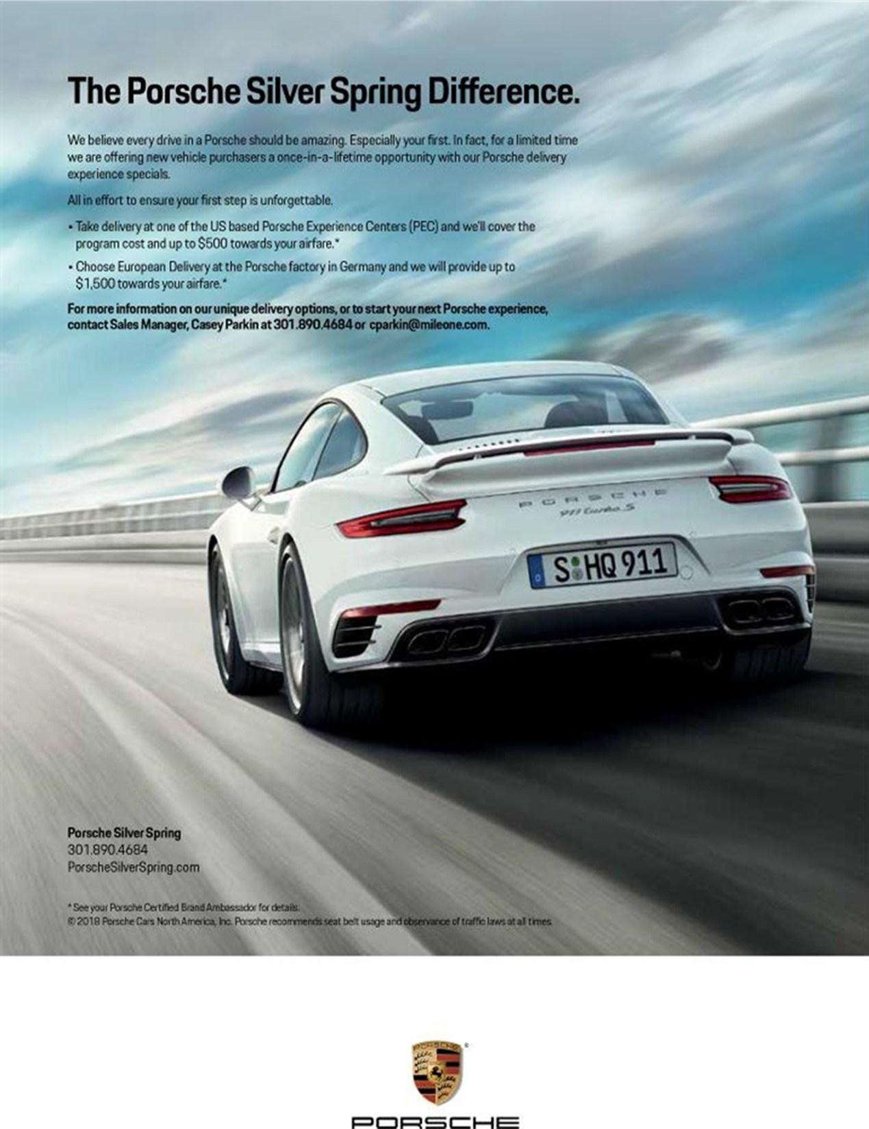 The Porsche Patter is the official newsletter of the Chesapeake Region PCA. Contributions to Porsche Patter should be sent by the 25th of the month preceding in Microsoft Word format to editor@pcachs.org. Please send high resolution images. Editor/Publisher: James B Beavan III; Contributing Photographers: James B Beavan III, Pedro Bonilla, Aniano Arao, Steve & Marsha Buss, Greg Hartke, Jim McKee. Contributing Writers: James B Beavan III, Steve & Marsha Buss, Aniano Arao, Pedro Bonilla, David Whitlock, Greg Hartke. Advertising: For questions about advertising rates and placement in the Porsche Patter, please contact editor@pcachs.org. Unless otherwise reserved, permission is granted to reproduce material published, provided full credit is given to the Porsche Patter and to the respective author. Subscriptions: join Porsche Club of America www.pca.org. The Porsche Patter is published monthly by the Chesapeake Region, PCA. Subscription is limited to members of the Chesapeake Region, PCA.