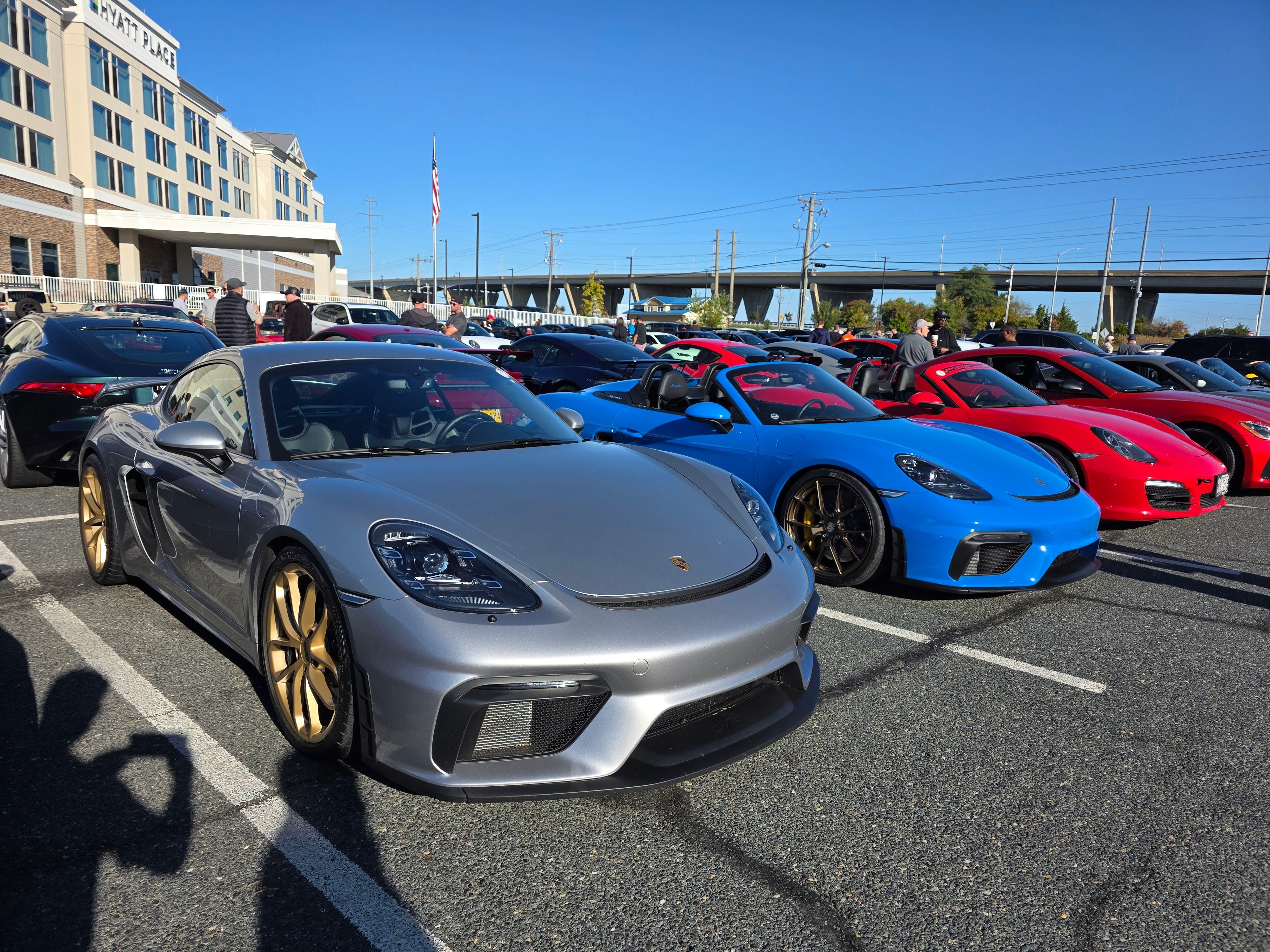 Boardwalk Reunion ‘23, the year it rained. Mark Miller’s ‘23 Spyder and ‘09 Cayman