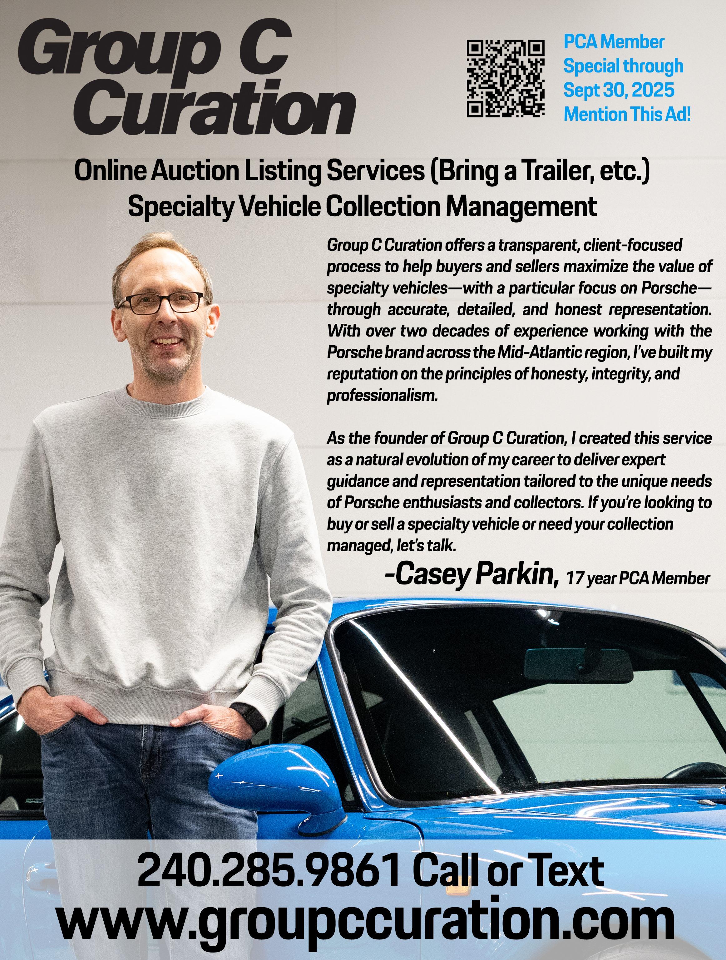 Registration is open until September 10th at https:// www.motorsportreg.com/events/chesapeakechallenge-56-sep-20-freys-brewery-pca-759471. We are grateful for our valued sponsor Porsche Hunt Valley for sponsoring this event again this year.
