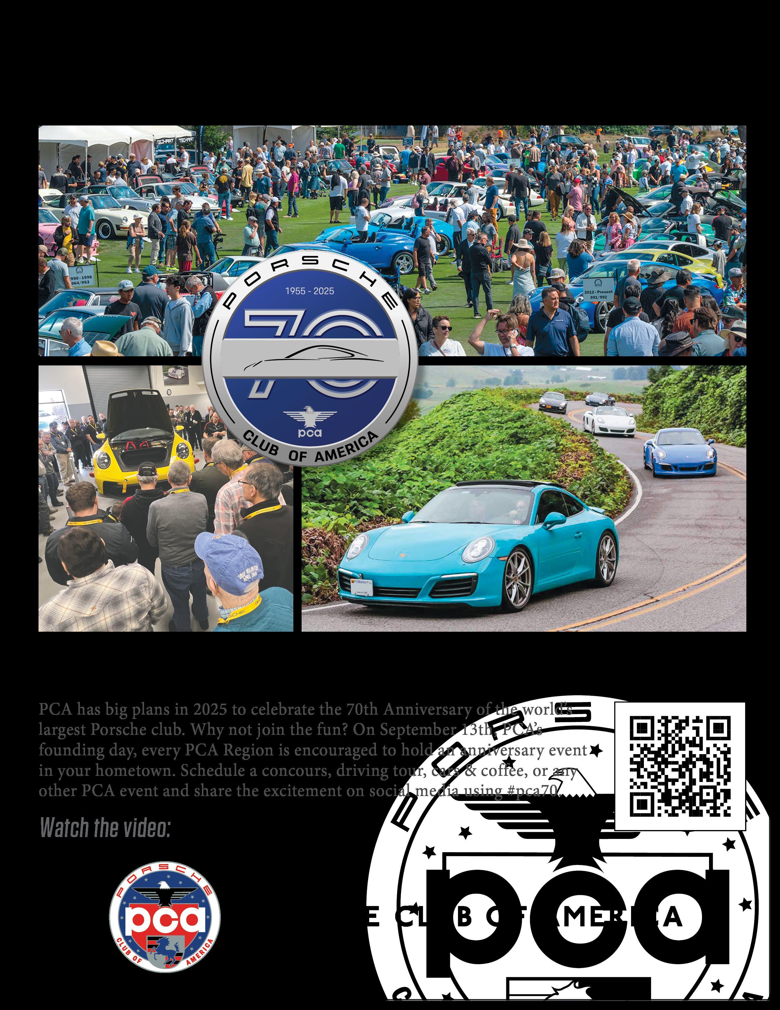 September is the month we welcome our wonderful Autumn weather and it is the kick off of a very busy season. This month, we pay special attention to the PCA’s 70th Anniversary on September 13 with two major events, first with the PCA Open House in Columbia and second with our Chesapeake Region celebration hosted by Porsche Hunt Valley. The following week on the 20th, we will hold our own premier event, the 56th annual Chesapeake Challenge, and lastly a New Member Party on the 29th hosted by Porsche Annapolis.