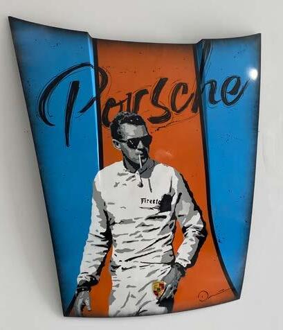Her preferred medium is acrylic on canvas or acrylic on wood. Her approximate volume of automotive art, primarily featuring Porsche-themed creations, reaches over thirty pieces. She has sold to clients in the US and Europe. It is the “timeless lines of our cars” that have captivated and