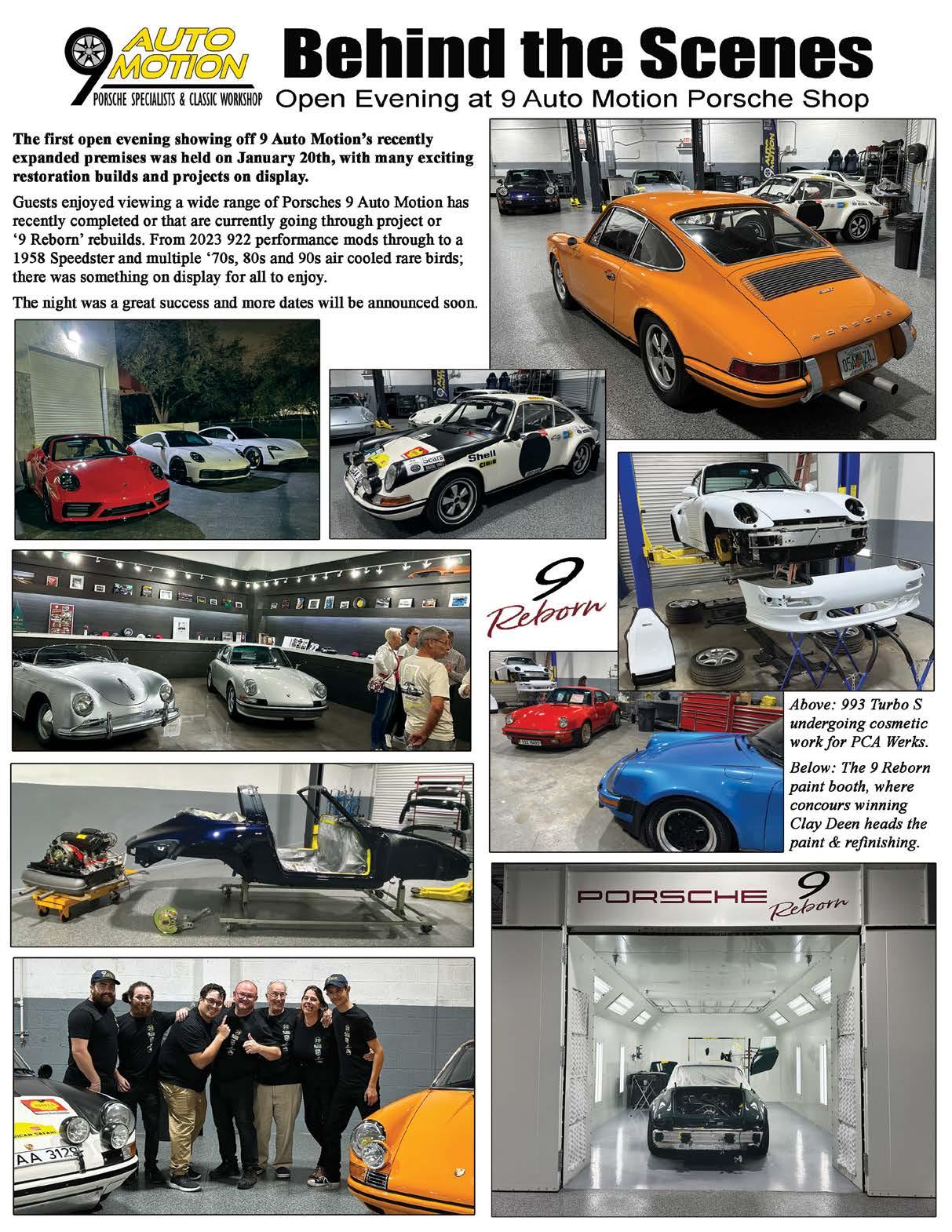 Tentative time 9:00 am-12:00 pm, with breaks in the middle and afterwards a Q&A, socializing, and tour of the new state-of-theart Zweck facility in South Miami. This first event will present the air-cooled era, covering Porsche models 356 through 993, and everything in between. We plan to have examples of cars from across this period and have the owners of the cars and experts talk about the series in general and the specific cars being presented. The plan is to go from car to car showing the “Evolution” and technical advances. Registration opens on ClubRegistration.net in early February. Limit of 75 participants.