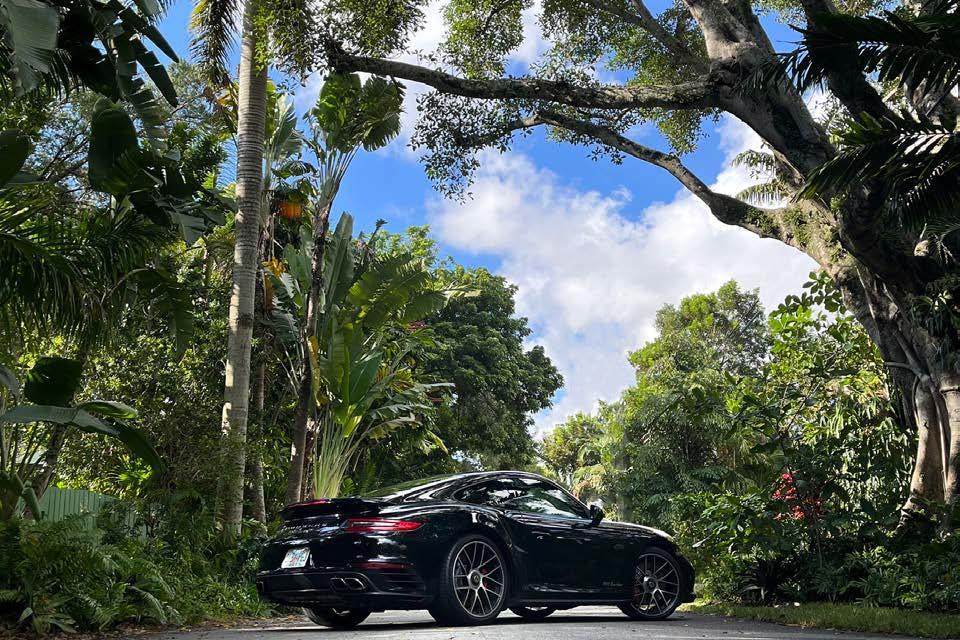 The setting is in the historic Colee Hammock neighborhood established in 1916, just off of Las Olas Boulevard, which makes for a nice old-style Florida setting that contrasts well with the modern 911 Turbo.