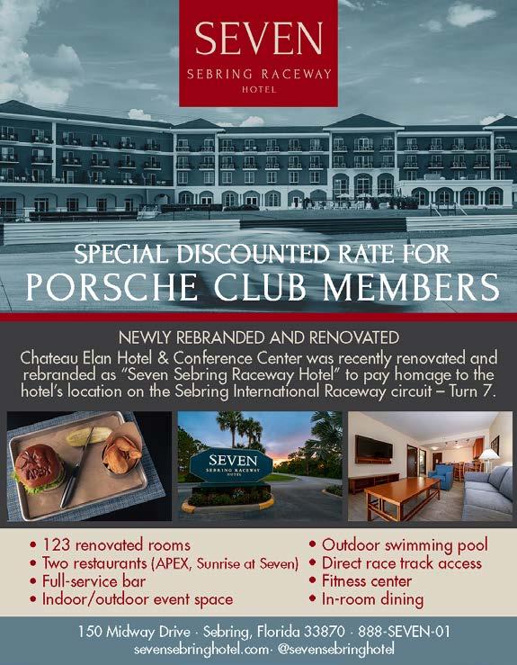 Needing to make a quick escape, the Driver’s Education program got back on track. This is an escape that many of our track event members had been wanting. Christy Spangler shares her experience as a HPDE student on page 14. PCA family from Suncoast Region and the PCA National DE Chair contributed immensely. Please share a special thanks to our DE sponsors for their support.