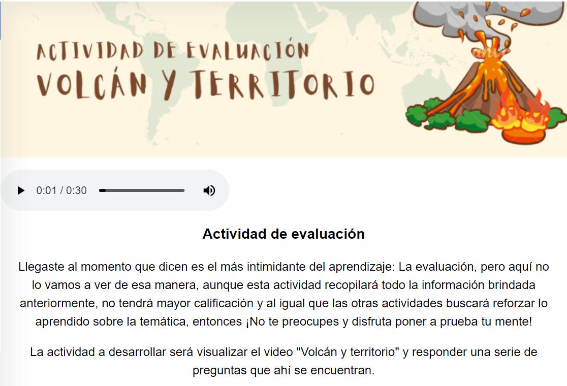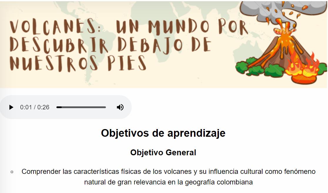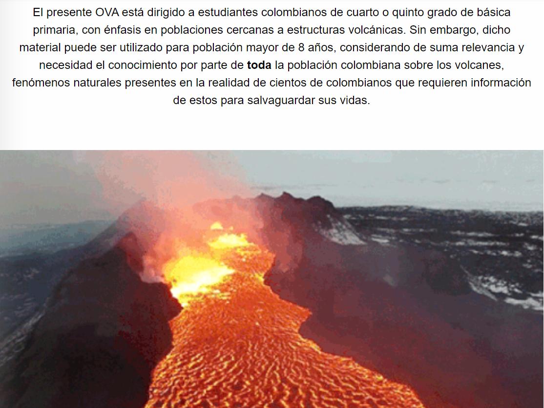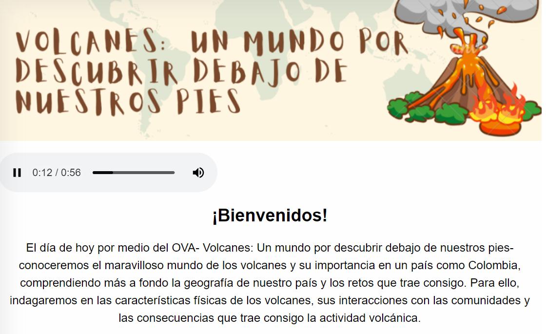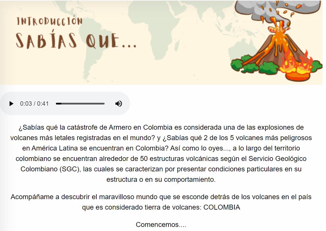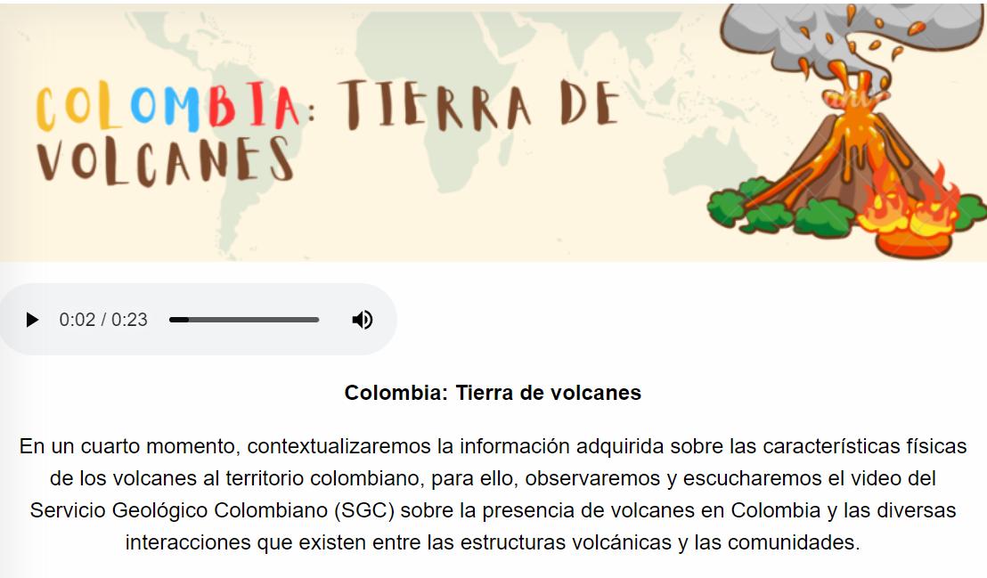 En esta sección del OVA se contextualizó toda la información anterior sobre las características físicas de los volcanes al territorio colombiano por medio de un video del Sistema Geológico Colombiano (SGC).