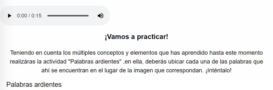 En esta sección del OVA, se mencionó brevemente la importancia de conocimientos previos para el desarrollo de la temática y se diseño una actividad precisamente para conocer los conocimiento previos de los participantes.