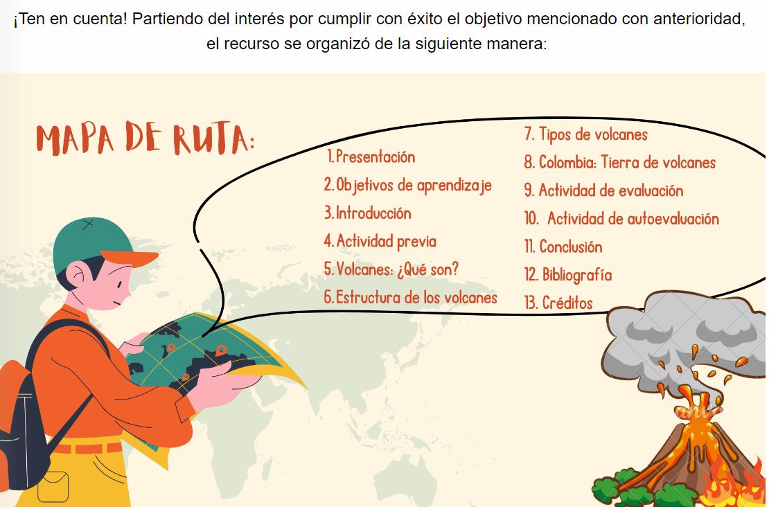 Por otro lado, se incluye la tabla de contenido o mapa ruta como se denomina en el OVA.