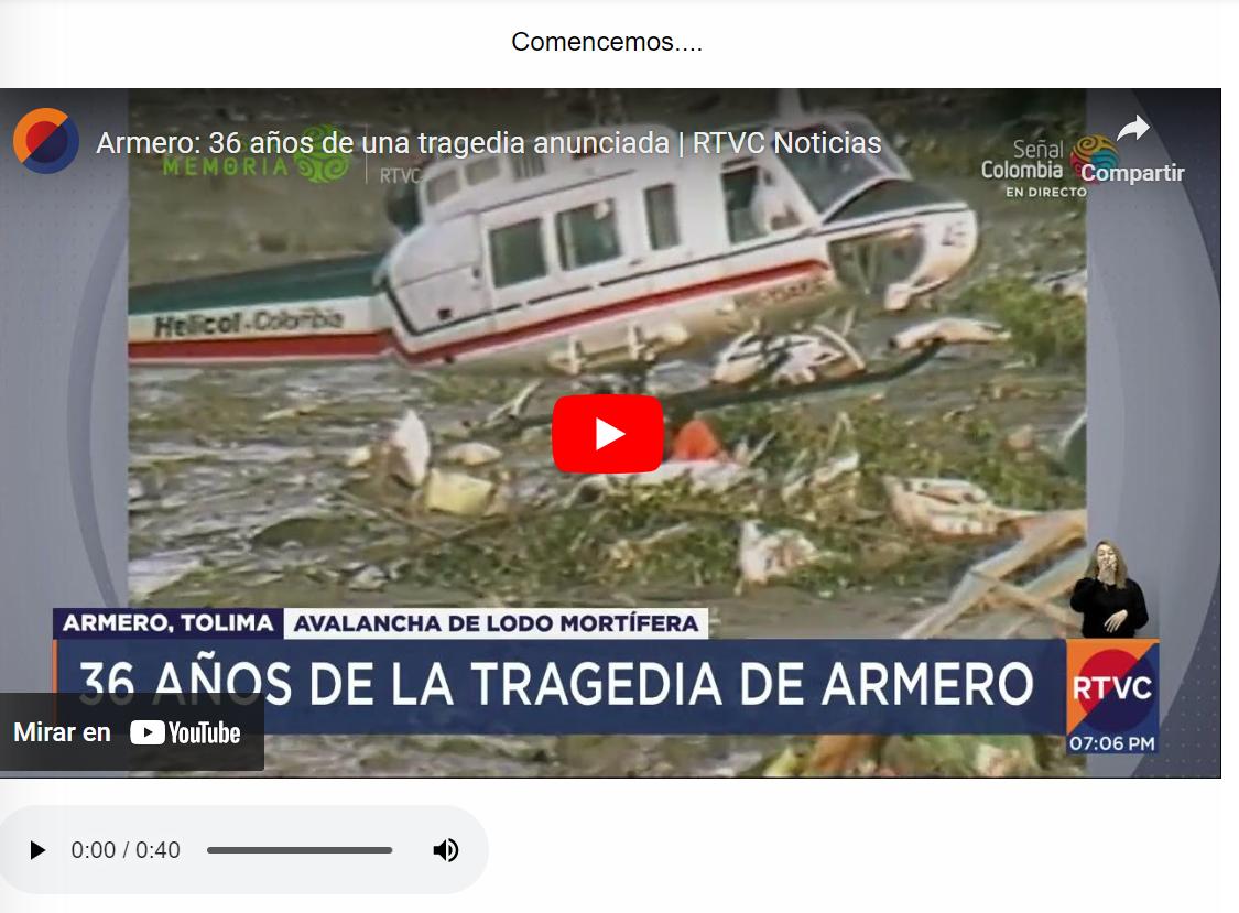En el caso de la introducción del OVA, se busca cautivar y motivar al lector en relación a la temática, destacando su revelevancia con el territorio nacional, para ello, se utiliza un video sobre la catastrofe de Armero .