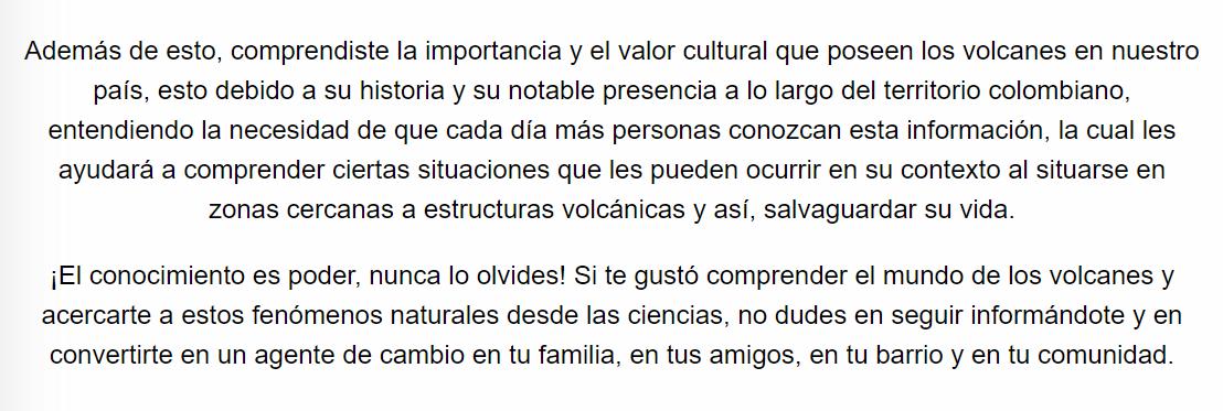 logrando por consiguiente, con ayuda de LUMI, mis conocimientos previos como futura licenciada e información de diferentes páginas entre ellas la del Servicio Geológico Colombiano (SGC) el OVA: