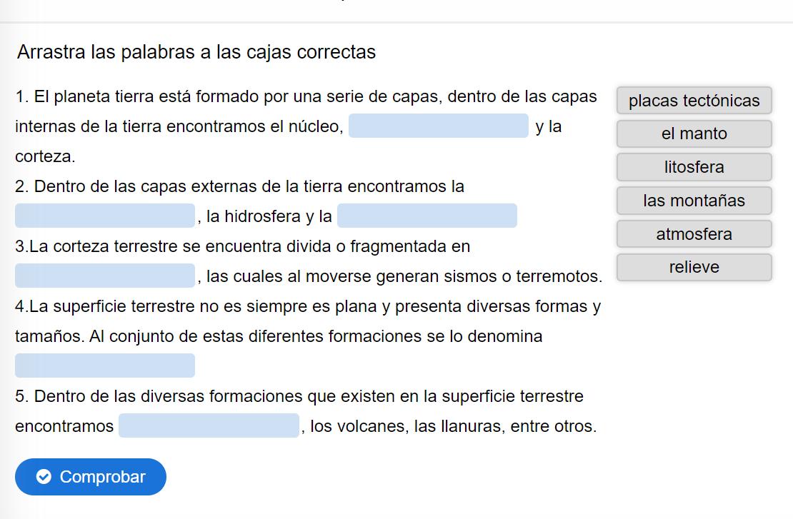 En esta actividad cada participante deberá arrastrar las palabras al recuadro que corresponda