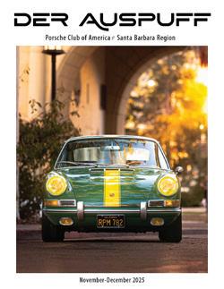 Der Auspuff, which translates as “the exhaust,” is the official publication of the Santa Barbara Region, Porsche Club of America. Chartered regions of PCA are granted permission to reprint any material herein provided full credit is given to the author and Der Auspuff (with the exception of copyrighted material). Any statement appearing in Der Auspuff is that of the author and does not constitute an opinion of the Porsche Club of America, the Santa Barbara Region, its Board or Appointees, the Der Auspuff Editor, or its staff. The Editor reserves the right to edit all material submitted for publication. Deadline for submittal of material to be considered for Der Auspuff is the first of the month preceding the month of publication.