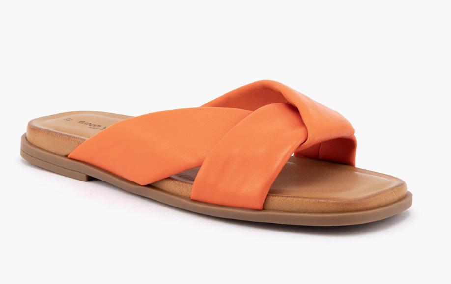 Gino Ventori’s commitment to craftsmanship shines through premium Italian and Brazilian leathers, paired with breathable perforated designs. This season, the iconic Frontier sandal debuts in bold tangerine and blue, adding vibrant flair to its signature laser-cut details.
