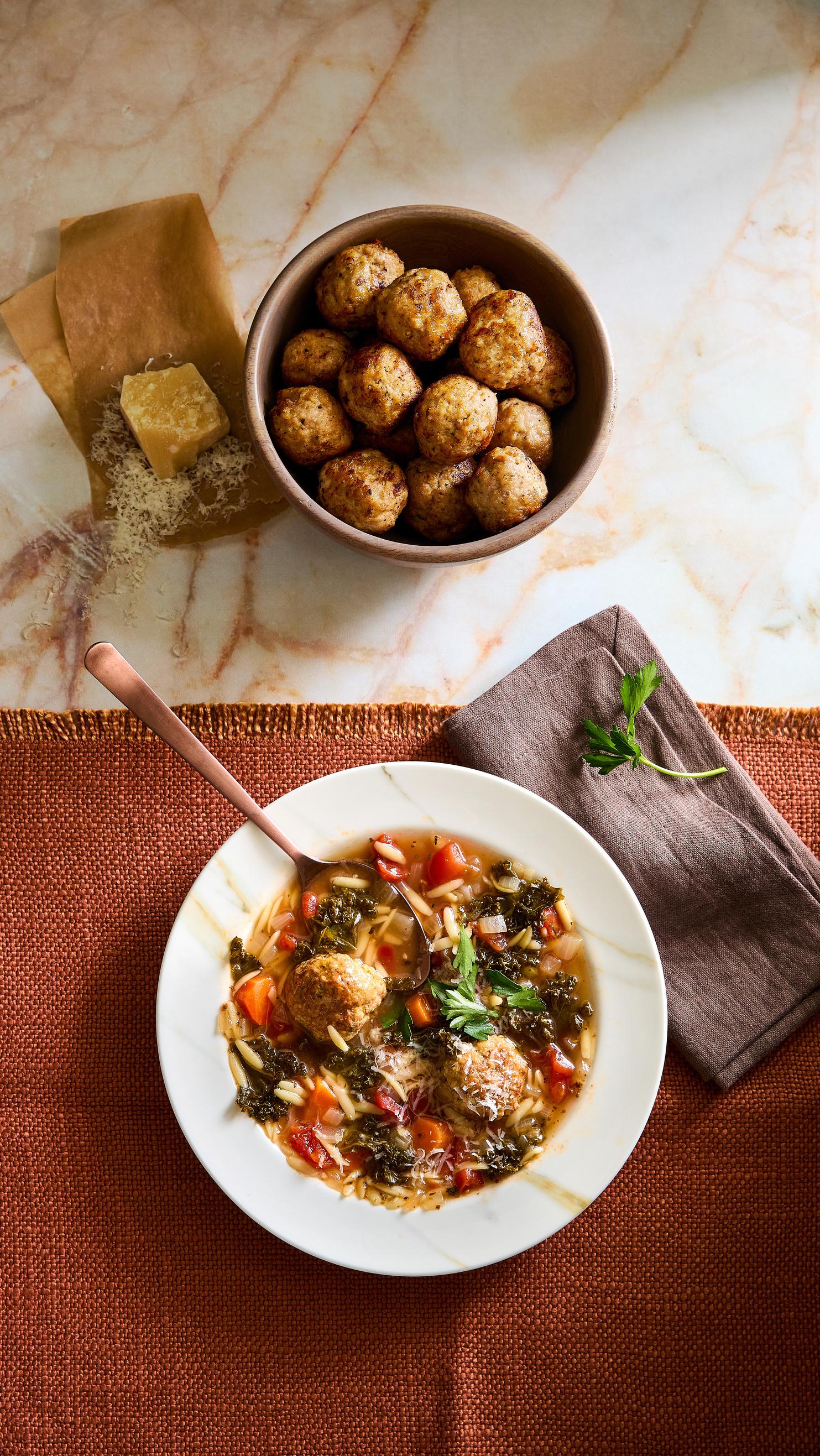 Make a big batch of the turkey meatballs ahead of time and freeze them. You’ll have precooked meatballs to add to this soup, pasta, or even meatball subs.
