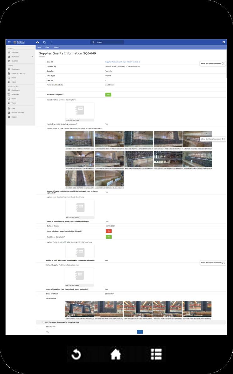 • Units inspected pre- and post-casting, with dimensional and photographic records captured digitally.