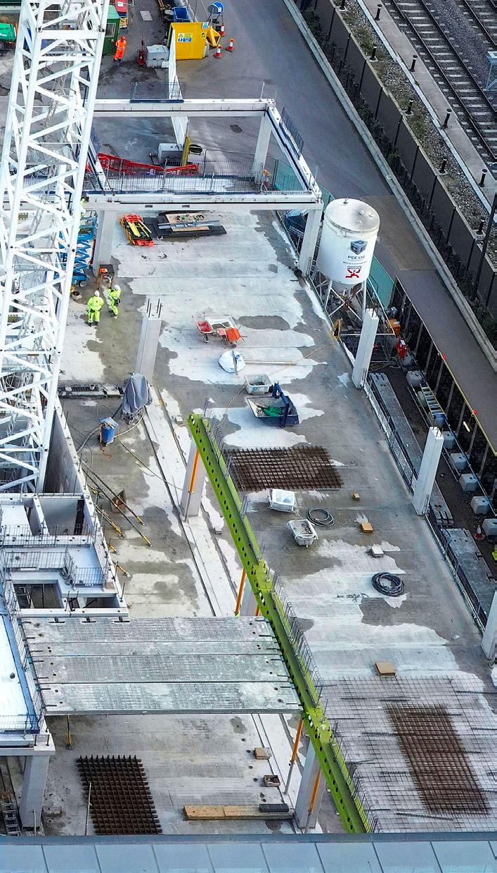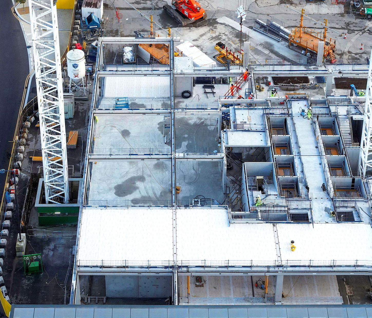 The systemised kit-of-parts for 3 Copper Square comprised over 4,800 offsitemanufactured components – including precast beams, columns, solid and twin walls, stair cores, hollowcore and solid slabs, structural steelwork, and CLT flooring.
