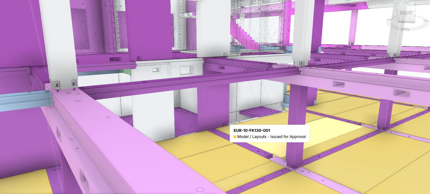 Through the Ynomia Platform, the BIM model was developed into a connected Digital Twin. Each component was assigned a unique identifier, enabling live data to be linked throughout its lifecycle—from manufacture to installation and beyond. This created a fully traceable record of every element within the structure.