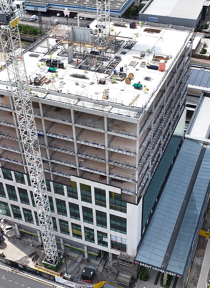 The building was assembled just inches from Brent Cross West station and metres from the live railway, all while the station remained fully operational and undisrupted.