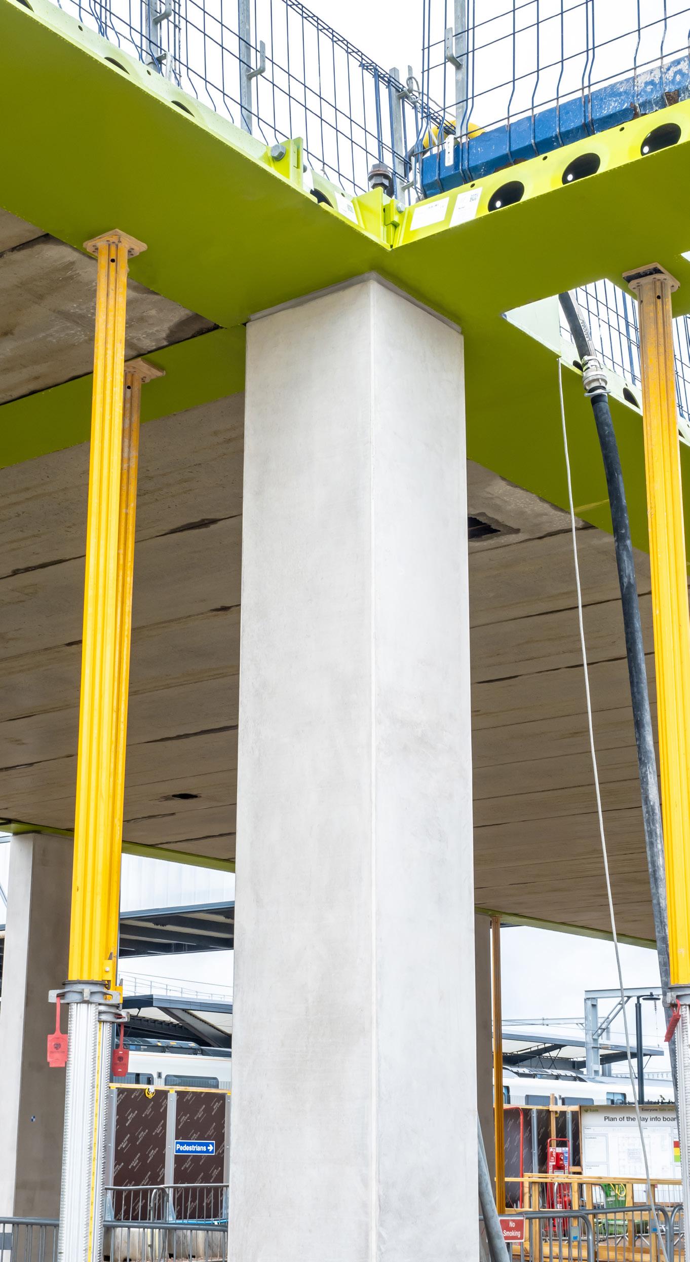 Precast concrete columns for the length and breadth of the structure at each level provided stability of the building.