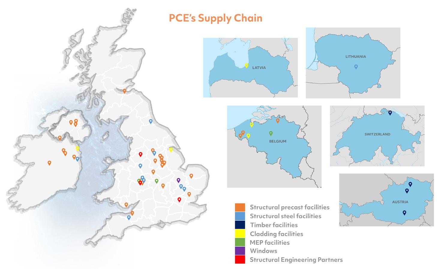 PCE’s supply chain model offers improved flexibility in construction. By collaborating with the best manufacturing specialists across the UK and Europe, we have the freedom to select the best offsite manufacturers and materials based on each project’s distinct architectural and engineering requirements.