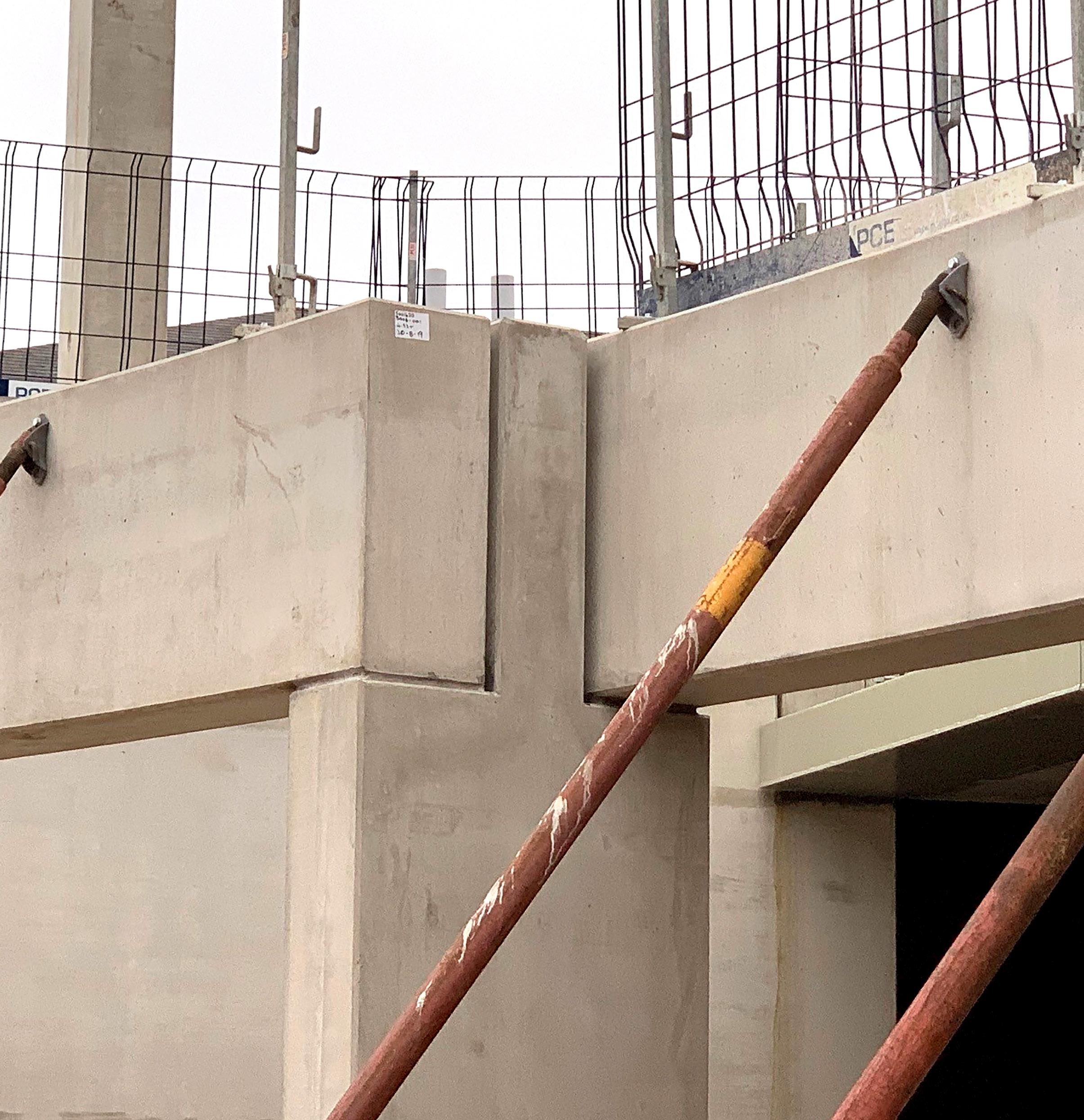 12m³ of on-site beam element pre-installed to the reduce working prestressed concrete for the columns manufactured Deltabeams during their