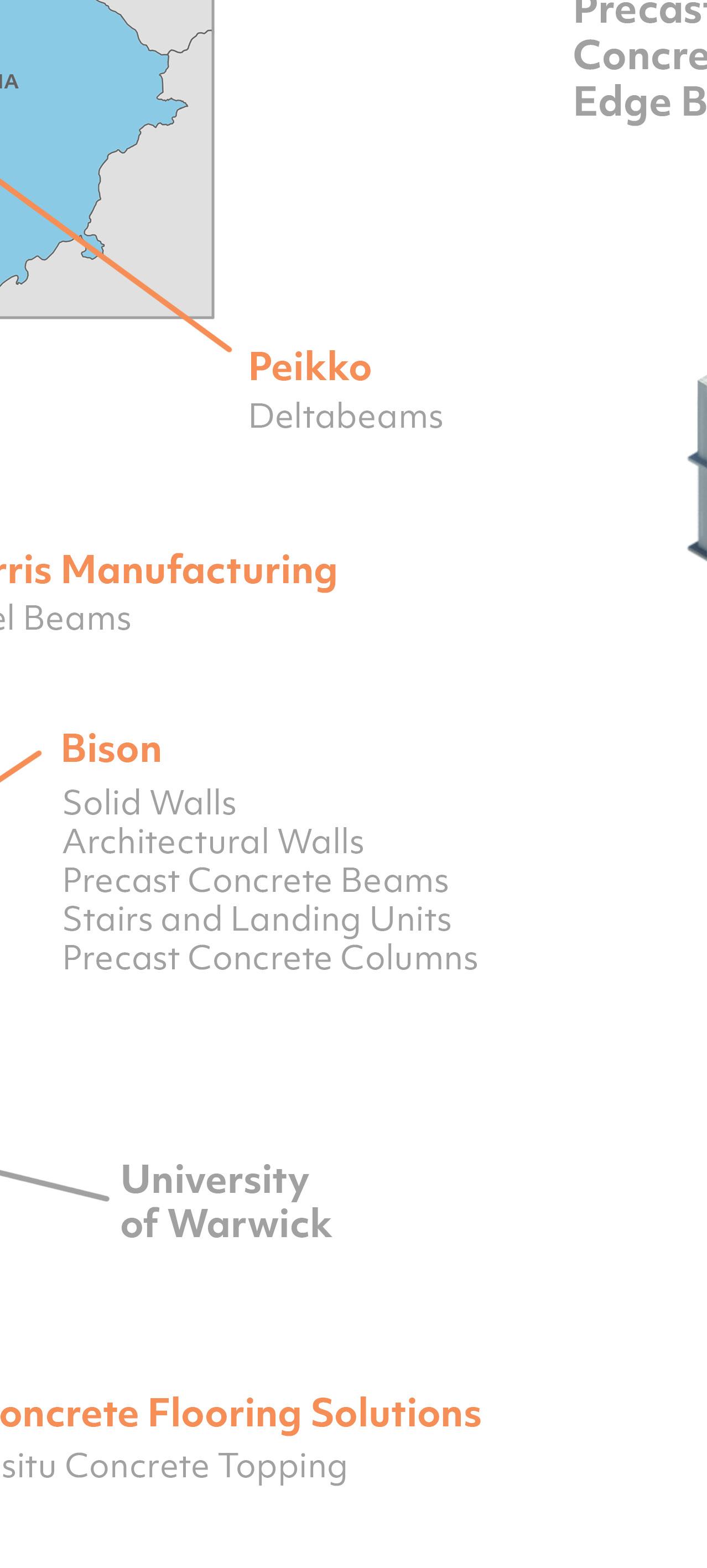 main Contractor and build Ltd used HybriDfMA ‘kit of the resulting steelwork portion of the even during programme and architectural quality University’s key environmental embodied within a total of components were architecturally finished 6m in height, tonnes. With using Ground reduce cement 50% supplementary the onsite saving in embodied was obtained. and final use of PCE’s reduced the initial the project significant reduction movements to site phase.