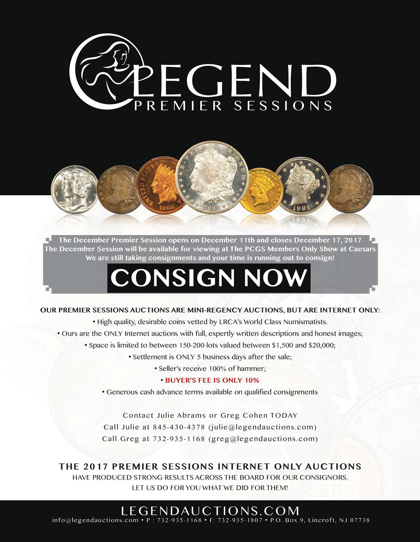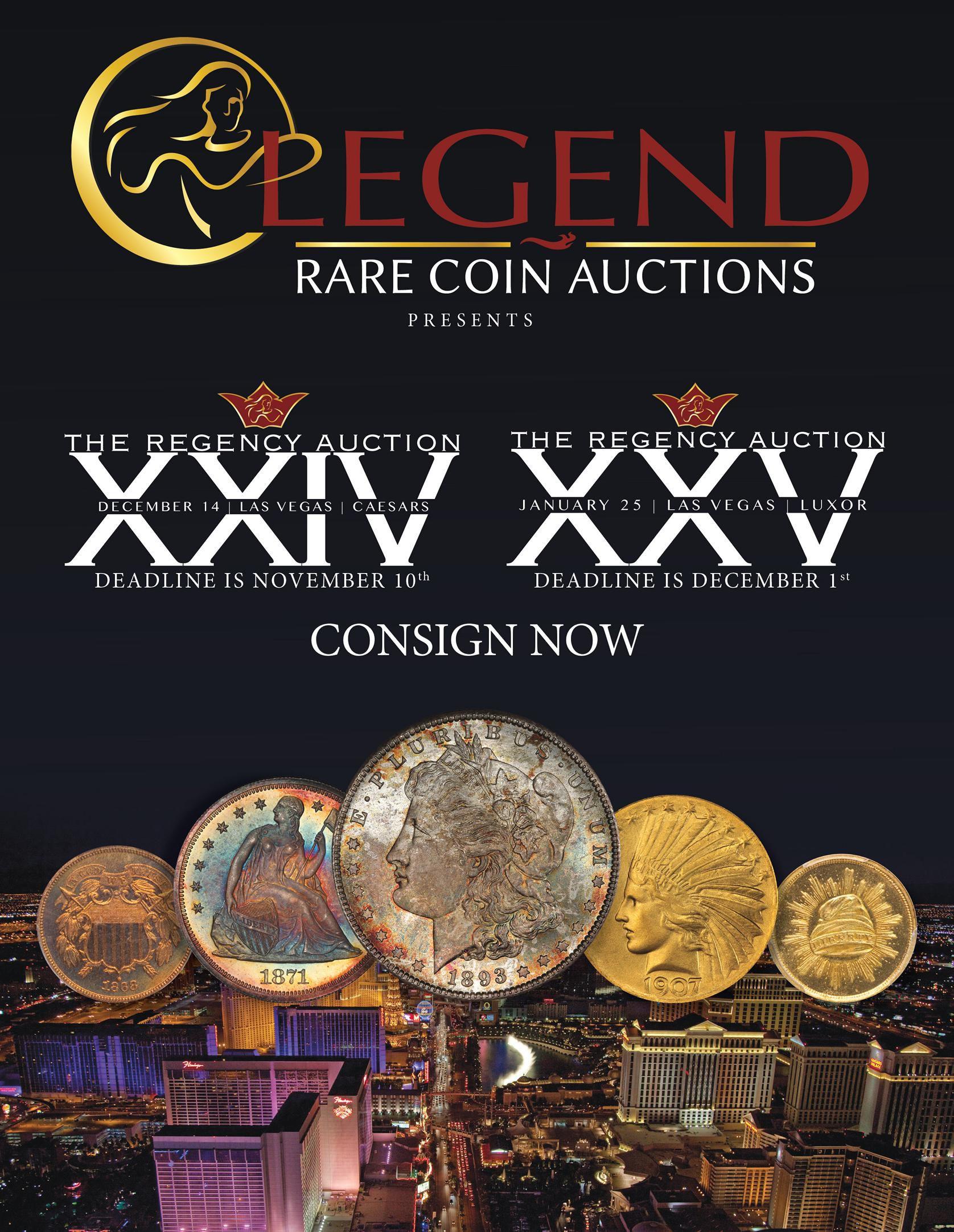 What else can be said about our cover coin other than it is the most valuable and desirable coin in one of the most popular and widely collected series in U.S. Numismatics? Well for starters, its condition is nothing short of superb, with incredible original toning over nearly flawless surfaces. It has appeared in auction only once before, in 2001, when it was purchased by noted silver dollar collector Jack Lee and it is set to return to the auction block on October 26, 2017 in Legend Auctions' Regency XXIII in Philadelphia.
