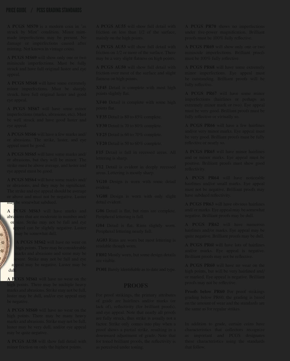 PCGS DESCRIPTION DESIG 68 69 70 BestGrade ALL