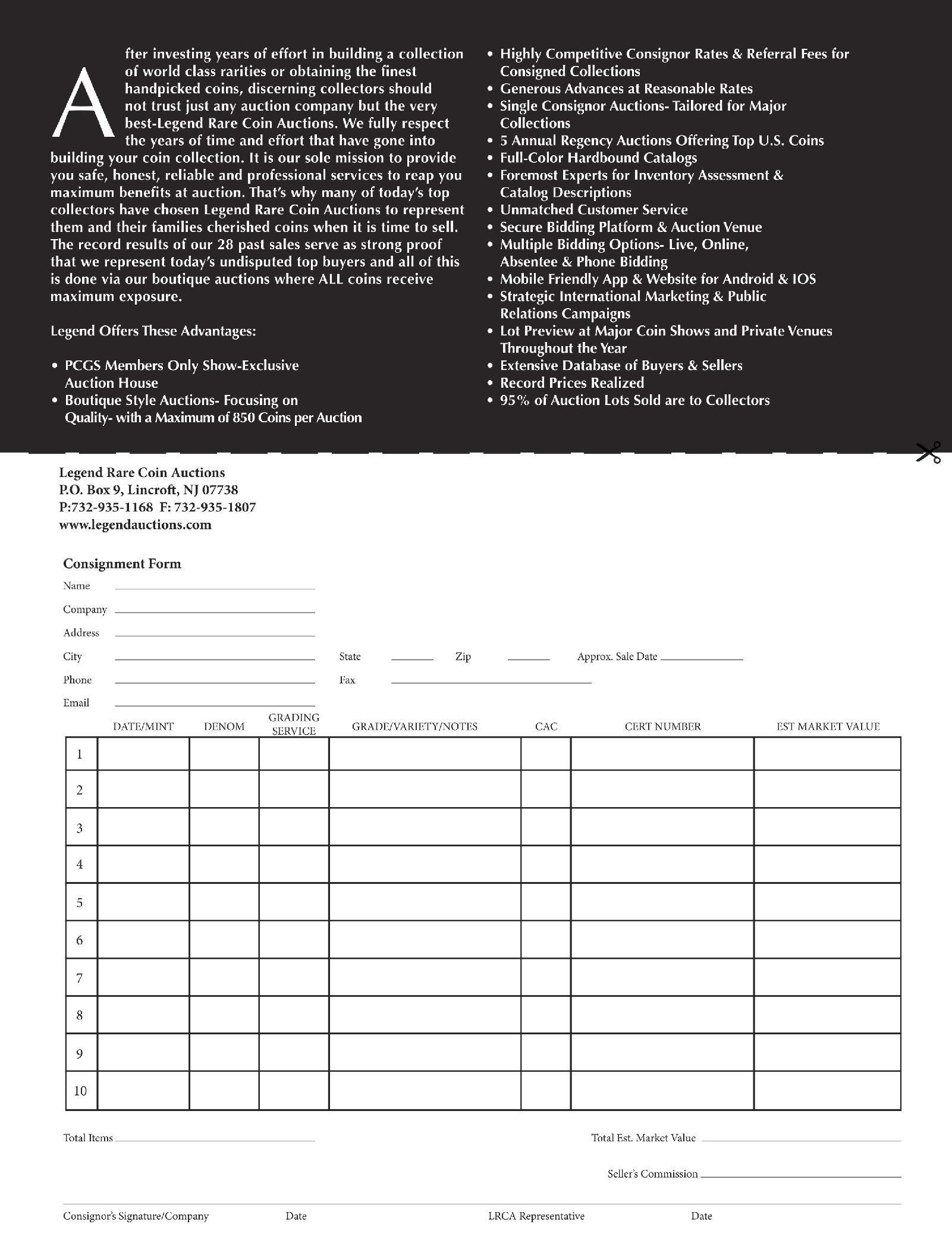Use the consignment form at the right and fill out your information. 2. Mail the completed form with your consignment to: GreatCollections