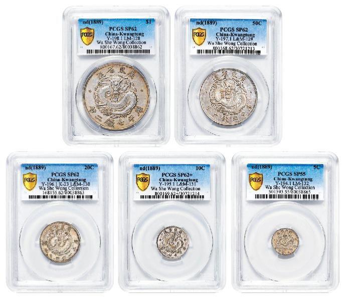China, Kwangtung, Silver Specimen Pattern, 1889, Five Pieces/Set, all Graded by PCGS